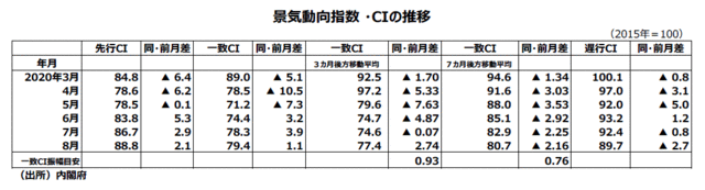 ※当レポートの閲覧に当たっては【ご注意】をご参照ください(見当たらない場合は関連記事『2020年8月分景気動向指数(速報値)』を参照)。