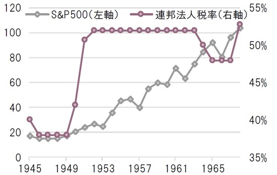 そして3つ目は、そもそも増税による株式市場への影響は長期的にみれば限定的だということだ。戦後1945年から1968年にかけて連邦法人税率は40.0%から52.8%へ大幅に引き上げられたが、この期間S&P500指数は長期的には右肩上りで推移しており、増税が必ずしも長期的な株安を意味するわけではなかった(注:戦前はこの限りではない)。今回は巨額のインフラ投資も控えていることを考えれば、株式市場の反応にも納得ができる。