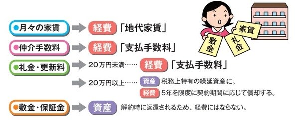 仕事用の事務所なら20万円以内の礼金や更新料も経費に