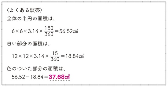 白い部分が「半径12㎝、中心角15°のおうぎ形」というとらえ方が間違っているのです。