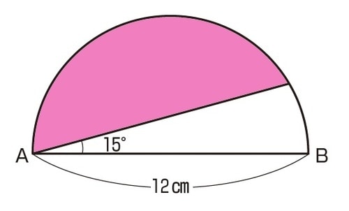 図のように直径が12㎝の半円があります。色のついた部分の面積を求めなさい(※円周率は3.14とする)。