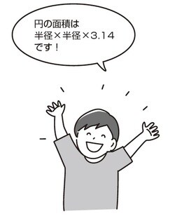 •円の面積は、半径×半径×円周率(3.14)。もしくは、円周の長さ×半径÷2