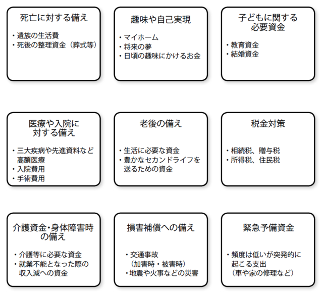 ●自分が死亡したとき、家族に遺すためのお金(死亡)