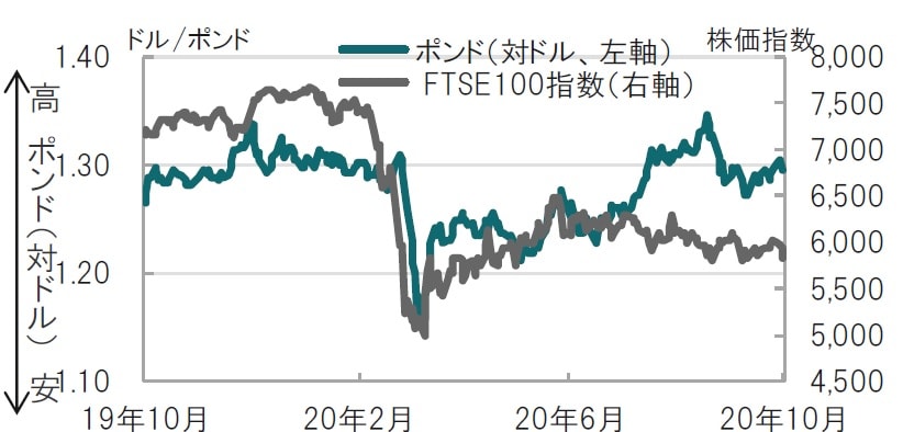 16日に英国が協議を続けると表明するかを事前に予想するのは困難ですが、政治動向を反映しやすい為替市場を見る限り落ち着いているように見られます。ただ、景気動向やコロナ感染再拡大懸念から株式市場は軟調です。逆に言えば経済に不安がある中で、今、合意なき離脱を選択する可能性を市場は低いと見ているようです。