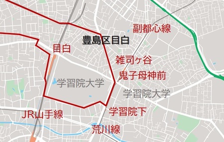 巨大ターミナル「池袋」からJR山手線でひと駅の「目白」。近接する「文京区目白台」とともに、学習院大学や日本女子大学、川村学園などの教育機関や幼児教育の私塾が集積するため、アカデミックな印象も強い高級住宅地です。