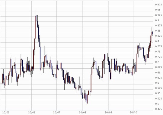 米ドル/円は9月下旬以降、すでに約1ヵ月も105~106円、1円程度の値幅での推移が続きました。米ドル/円の「小動き化」はよく知られるところですが、月間値幅で見た場合、1円程度の値幅はさすがに記録的な小幅といえます。