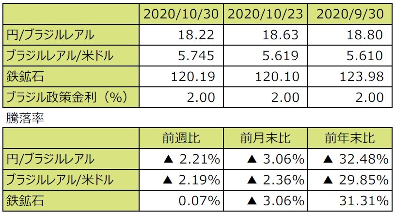 (注2)ブラジルレアル/米ドルの騰落率はブラジルレアルの対米ドルでの騰落率。