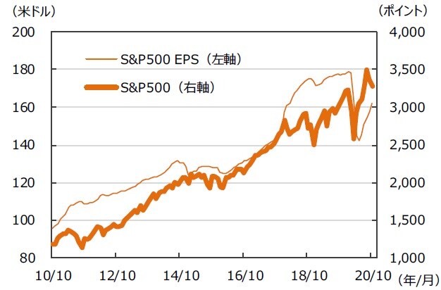 (注)データは2010年10⽉〜2020年10⽉。⽉末ベース。EPSは12ヵ月先予想ベース。FactSet集計。