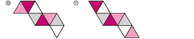ここまでは、自力で描けるようになってほしい展開図です。じつは、正八面体の展開図も11種類あります。