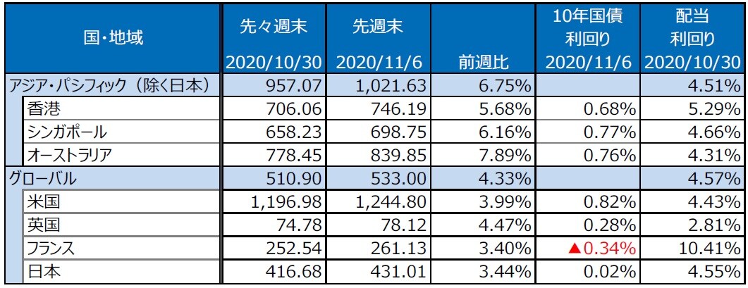グローバル・リートは、欧米での株式市場の大幅上昇などを好感して4.33%上昇しました。