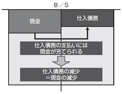 したがって、図表3に示すように、仕入債務が減少する場合は、その減少分の支払いに現金を使うことになるため、仕入債務の減少は現金の減少を意味するのです。