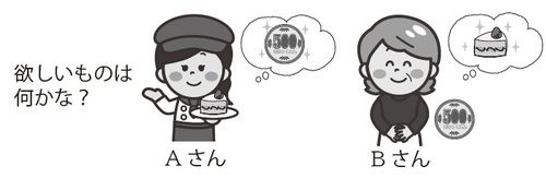 Aさんは、ケーキを500円で買ってほしいと思いました。Bさんは、ケーキを500円で売ってほしいと思いました。このとき、AさんとBさんの頭の中を覗いてみると、Aさんはケーキを引き渡して、500円の支払いを受けることを望んでいます(図表2)。他方、Bさんは、500円を支払ってケーキを受け取ることを望んでいます。しかし、頭の中で考えているだけでは、相手に伝わらないので、望んでいる結果は生じません(図表3)。