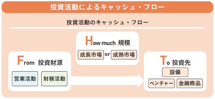企業の例をあげると、ソフトバンクは「財務活動によって得た現金で成長市場のベンチャー企業に投資している」一方、サイバーエージェントは「営業活動で得た現金を成長市場に位置する新規事業に投資している」のです。