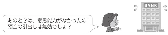 ここで、金融機関の視点に立ってみましょう。預金者本人が、預金の引出し(※法律行為)をしたときに、判断能力を失っていると、その預金の引出しに対応した金融機関は、事後的に無効主張されるリスクを負ってしまいます。