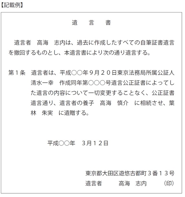なお、この遺言書サンプルを見れば分かるように中身はいたってシンプルです。何度も遺言書を書いてしまったが、「やはり前の遺言書に戻したい」と思ったときには、ぜひ、参考にしてみてください。