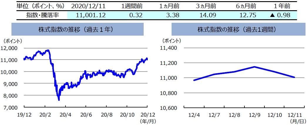 先週の豪州株式は、上昇しました。豪州株式は週の前半、新型コロナワクチンに関するポジティブなニュースや米国の追加経済対策への期待感から堅調な展開となりました。後半は、世界的な新型コロナの感染再拡大による行動規制強化の動きや、米国経済対策協議の難航などから上値が重くなりましたが、週間では上昇となりました。