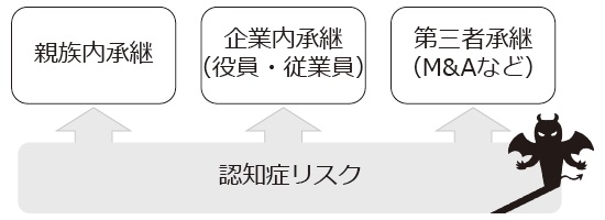 社長が高齢になって、認知症のリスクが高まると、そのリスクは、すべての事業承継の類型に重大な影響を及ぼします。