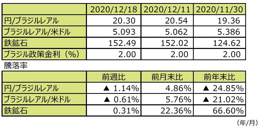 (注2)円/ブラジルレアルと円/米ドルの単位は円、ブラジルレアル/米ドルの単位はブラジルレアル。