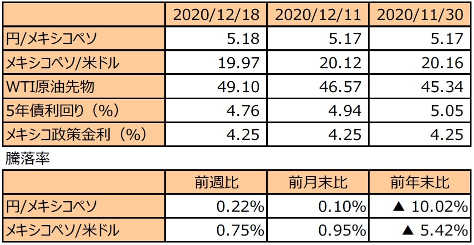 (注2)円/メキシコペソと円/米ドルの単位は円、メキシコペソ/米ドルの単位はメキシコペソ。