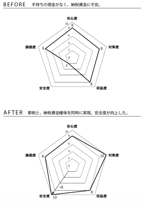 その結果、Jさんと相続人にはいくつものメリットが生まれます。ひとつには不動産を譲渡することで納税資金としての現金が確保できますし、個人ではなく、会社にすることで対外的信用が高まり、融資が受けやすくなりました。