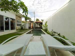 サヌール、ビーチまで車の7分のロケーションに建つ、4棟の集合物件の一角。2ベッドルームのヴィラです。ショートレンタルにもロングレンタルにも、欧米人にも日本人にもローカルにも、住みやすいと評判。プールを囲うように建てられたL字型の建物は、リビング・キッチンを中央に、