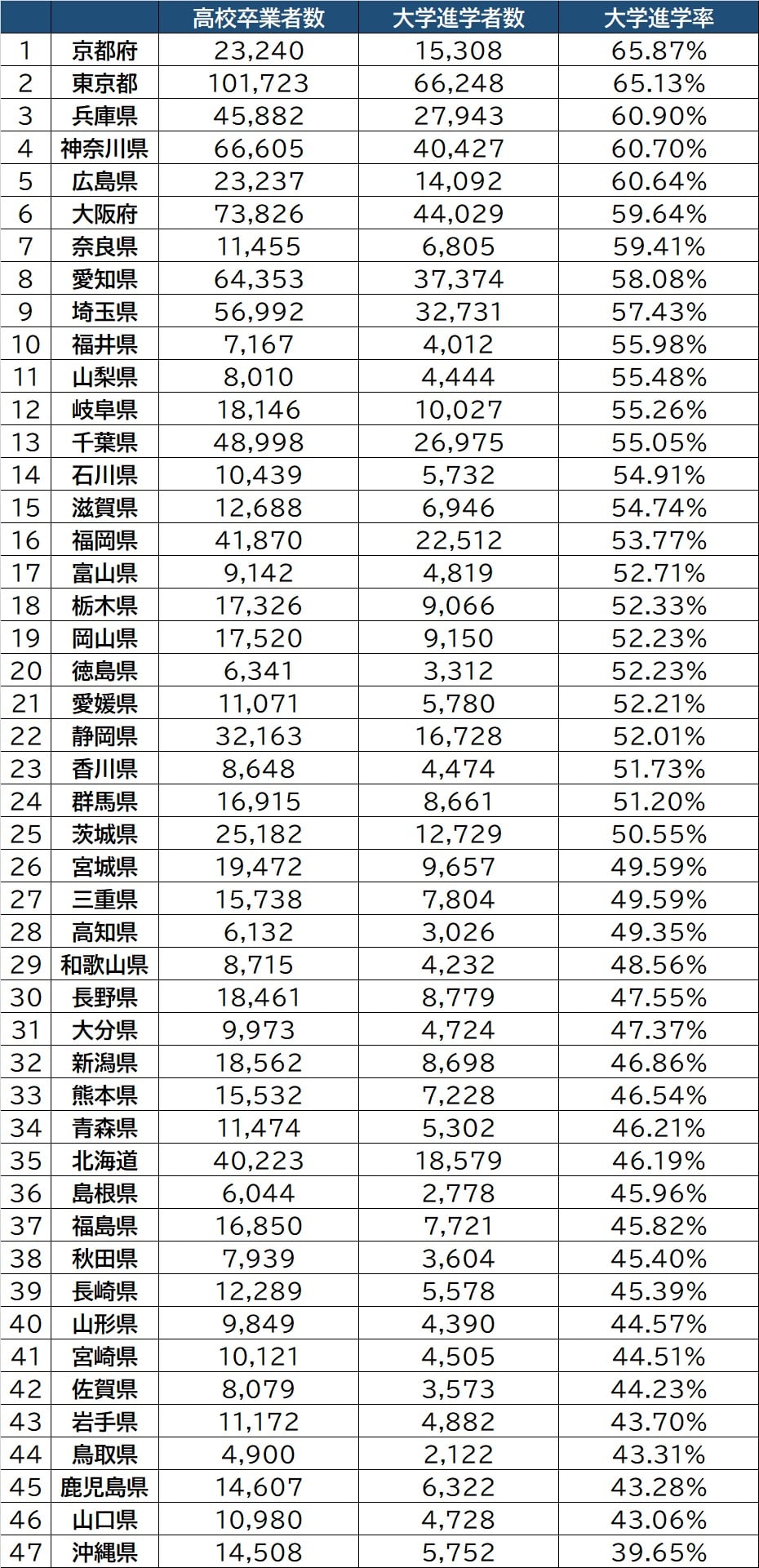 都道府県別「大学進学率」ランキング