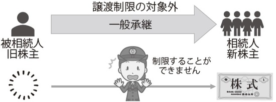 この譲渡制限株式を譲渡により取得するには、会社の承認を必要としますが、相続による株式の取得は、この譲渡制限の対象外です。