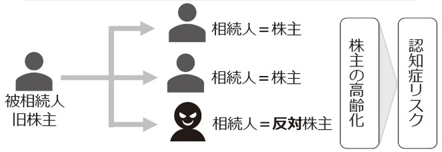 株主の認知症リスクから引き起こされるデッドロックを放置するとどうなるでしょう? 再び、相続の入り口が開きます。