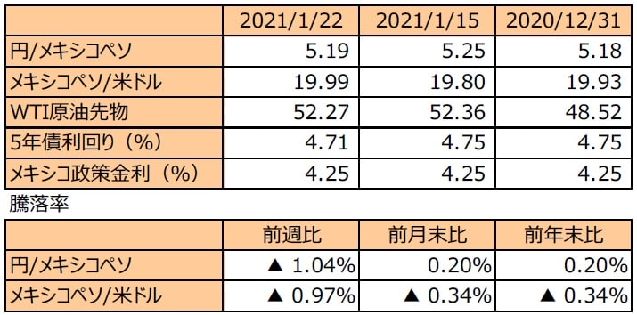 (注2)円/メキシコペソと円/米ドルの単位は円、メキシコペソ/米ドルの単位はメキシコペソ。
