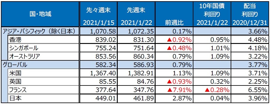 (注5)前週比は2021年1月15日から2021年1月22日まで、前月末比は2020年12月31日から2021年1月22日まで、前年末比は2020年末から2021年1月22日まで。