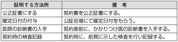 後々の争いに発展しないように、契約時に判断能力の有無を検査して、その結果を証拠として残しておくことも検討しましょう。