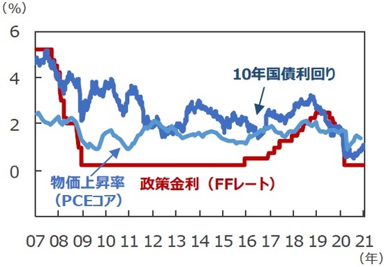 (注2)物価上昇率は個人消費支出(PCE)コア物価指数の前年同月比で、2007年1月~2020年11月。