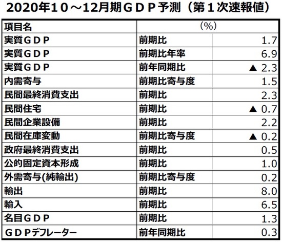 ※当レポートの閲覧に当たっては【ご注意】をご参照ください(見当たらない場合は関連記事『2020年10~12月期実質GDP(第1次速報値)予測』を参照)。