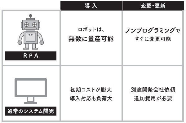 その点、RPAのロボットはその気になれば誰でも作ることができます。これはRPAの大きな優位点です。