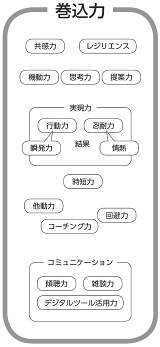 巻込力は、大別すると、時間管理や資料作成術などの業務スキルと、人を動かすコミュニケーションスキルの2つの能力になります。