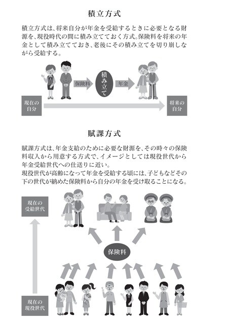 年金の仕組みには、大きく分けて①積立方式と②賦課方式があります。