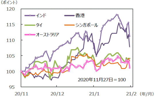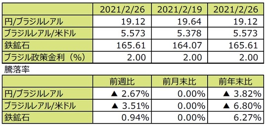 (注5)前週比は2021年2月19日から2021年2月26日まで、前月末比は2021年2月26日から2021年2月26日まで、前年末比は2020年末から2021年2月26日まで。