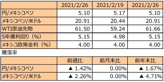 (注2)円/メキシコペソと円/米ドルの単位は円、メキシコペソ/米ドルの単位はメキシコペソ。