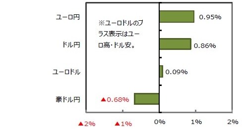 円相場は総じて円安となりました。対ドルでは、米国の追加経済対策やコロナワクチン接種の進展による景気回復期待などから米国の長期金利が上昇したことなどを受けて、0.86%の円安となりました。対ユーロでも0.95%の円安となりました。