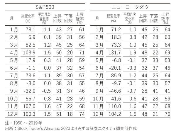 大統領選挙があった2020年11月に、S&P500は11%の上昇と大幅高になりました。ニューヨークダウだとパフォーマンスが良いのが4月、2番目が11月である一方、悪い月は9月、6月、8月、5月の順なので、「Sell in May」の傾向は昔からあったといえます。