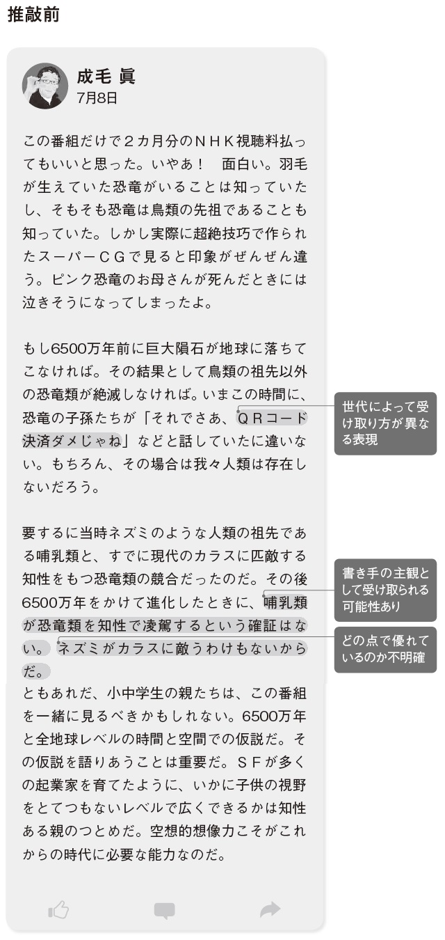 読者が増えるのは喜ばしいことだが。しかし、その反面、1つ問題が生じることもある。それは、世の中にはいろいろな受け取り方をする人がいるということだ。自分の真意とは違うように受け取られ、誹謗(ひぼう)中傷じみたコメント、いわゆる「クソリプ」を送られる可能性もゼロではない。