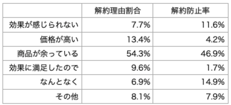 そんな中、解約時の理由に商品が余っていると答えた人に、配送時期を変更できるページの存在を教えると約25%の人が解約を踏みとどまり、配送時期の変更を選んでくれました(表1参照)。