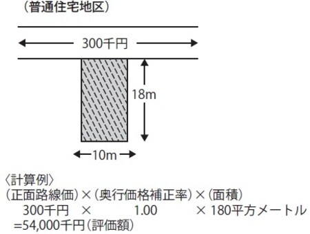 相続財産に含まれる土地の評価は、土地の形状や道路付けに応じた調整(増額や減額)をしたうえで、その土地が面する路線(道路)に付けられた「相続税路線価」にその土地の面積を掛けて計算します。