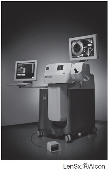 最近、白内障手術の中でも数が増えてきているのが、レーザーを使った白内障手術です。フェムトセカンドレーザーという特殊なレーザーを照射する機械を使って、白内障手術の主要な部分を行うものです。