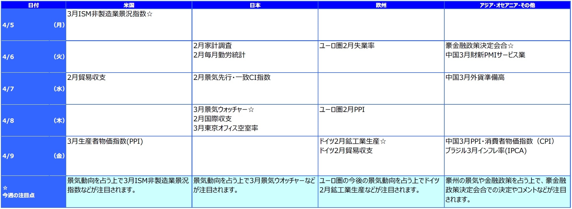 5. 今週の主な注目材料