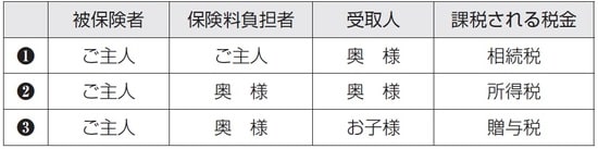 しかし、相続税の非課税枠が使えるのは図表3の❶の契約形態のみです。❷や❸は課税される税金が異なるので、相続税の非課税枠は使えません。相続税の非課税枠が使える契約形態は、あくまでご主人がご自身を対象とした生命保険契約に加入しており、ご主人が生命保険料を負担して、奥様やお子様が受取人となっている生命保険です。