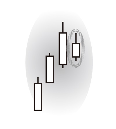 図表2のチャートでは、大きく上げた前日の大陽線に対して、その株価の範囲に収まる、小さな陽線が出た。