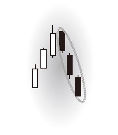 勢い良く上げてきた株価の勢いは終わり、利益確定の傾向が続いているので、ここから買っても、再び上値をとるのは難しい。急激な上げにつられて買うと、下降トレンドに向かう下落に遭遇する典型的な足である。