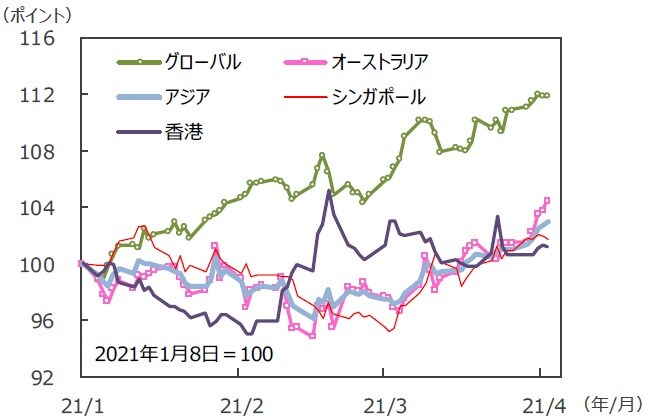 (注5)前週比は2021年4月2日から2021年4月9日まで、前月末比は2021年3月31日から2021年4月9日まで、前年末比は2020年末から2021年4月9日まで。