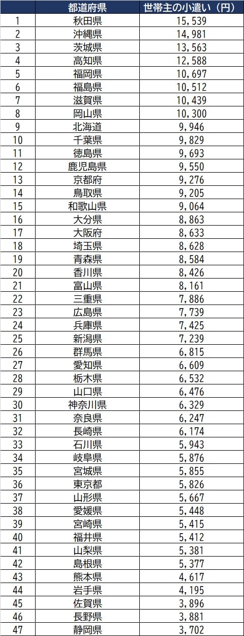 都道府県「会社員のお小遣い」ランキング…1~47位
